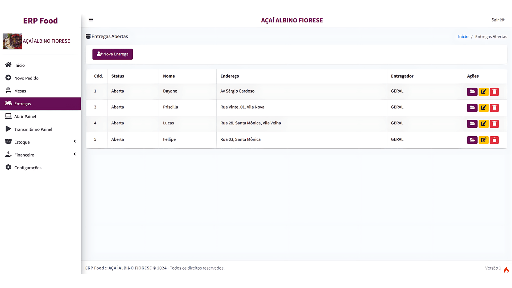 Para serviços de entrega (delivery), o ERP Food oferece um controle completo, desde o recebimento do pedido até a entrega ao cliente, garantindo eficiência e satisfação.
